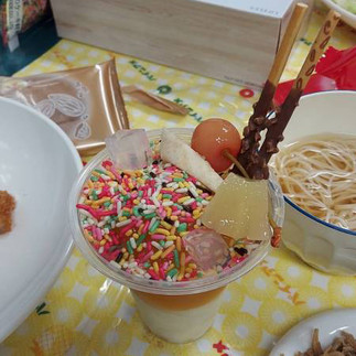 令和4年11月9日 子ども食堂maririnnoie2022年11月10日読了時間: 1分👩🍳こんだて👨🍳・とんかつ・根菜の煮物・にゅうめん・サラダ食後、カップ入りアイスの上にゼリー(一心堂さんから寄付していただきました🙇♀️)やフルーツ、お菓子をのせたオリジナルのパフェを作りました😋親も一緒に楽しみましたよ✨